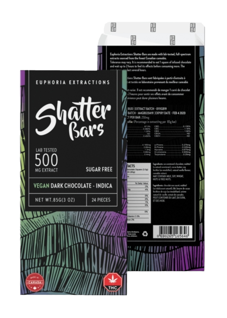 Shatter Bars Vegan Dark Chocolate Indica